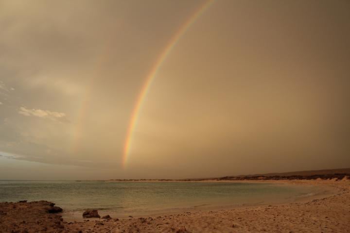 Unser Highlight war hier das Campen im Park. Wir hatten einen von sechs Stellplätzen in Strandnähe bekommen. Diese waren damals nicht buchbar, sondern wer zuerst kam, der hatte einen. Nicht nur, dass die Farben des Sonnenunterganges schon unglaublich waren: Wir hatten zudem noch das Glück, Zeugen von Doppel-Regenbögen zu werden.