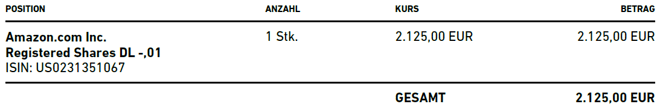Amazon - 1 Stück á 2.125,00 € am 21.04.2020