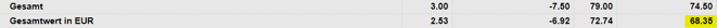 Der Anfang ist gemacht und der Spalte "Realisierter G&V" (Gewinn und Verlust) zu entnehmen. Die entscheidenden Stellen habe ich gelb markiert: