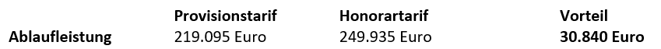 Rechenbeispiel zu Versicherungs-Honorartarifen: