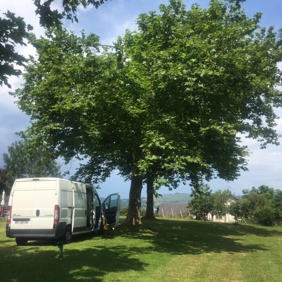 Im Urlaub selbst war ich mit meinem Transporter auf 2 Campingplätzen. Der erste war in den Pyrenäen und sehr klein. Mitten im Nichts mit tollem Ausblick. Wir waren fast allein dort. Herrlich!