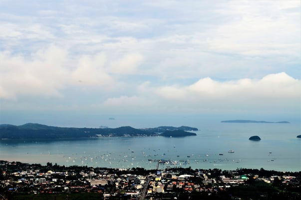 Die Aussicht vom Berg ist auch gut. Auch wenn wir leider nicht das beste Wetter hatten. Phuket-Town, die Chalong-Bucht und einiges mehr von der Umgebung kann man prima sehen.