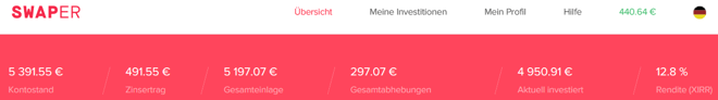 Mit Swaper* kann ich eine weitere kleinere P2P-Plattform zur Diversifizierung empfehlen. Wenn man hier länger als 3 Monate mit mehr als durchschnittlich 5.000€ investiert ist, erreicht man den VIP-Status mit 2% Extrabonus. Dann rentieren die Kredite dort mit bis zu 14% Prozent.